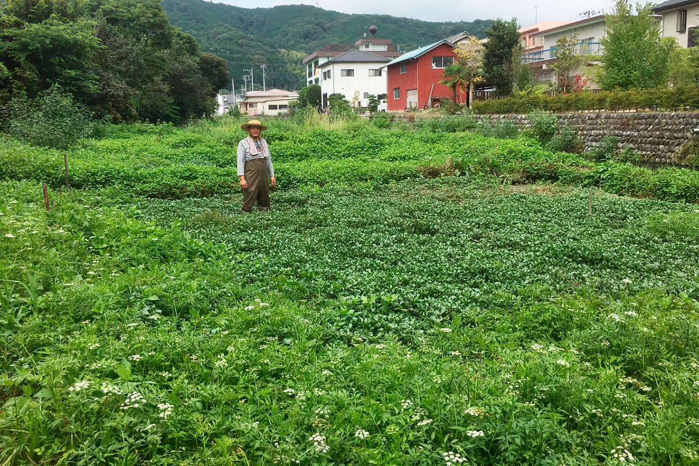 狩野川と城山を望むこの大仁の地で、父は、70年前から玄米を軸にした食養により、多くの患者さんを治療し、その成果を上げてきました。父は「胡麻塩玄米おにぎりと海草、青菜を食べ続けることで健康で長生きできる」と説いています。そして、まさにこれを仏教でいう「不染汚(ふぜんな)」の食事であると考えました。